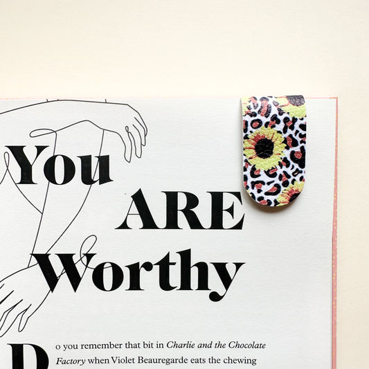 Sunflower and Leopard Print Floral Magnetic Bookmark Set